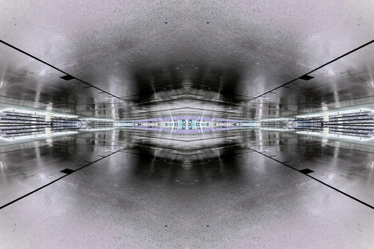Imaginary architectures emerge when photos of reflective surfaces are mirrored.