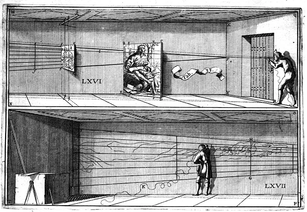 A talented mathematician and artist, Niceron revealed for the first time the geometry behind the illusion. Already renowned for his illusions of sacred figures in churches, Niceron published La Perspective Curieuse(The Curious Perspective) in 1638. On top of explaining the technique, Niceron actually illustrated himself in the act of making his most famous illusions. He was a magician who revealed his own tricks–so that we could all do magic.