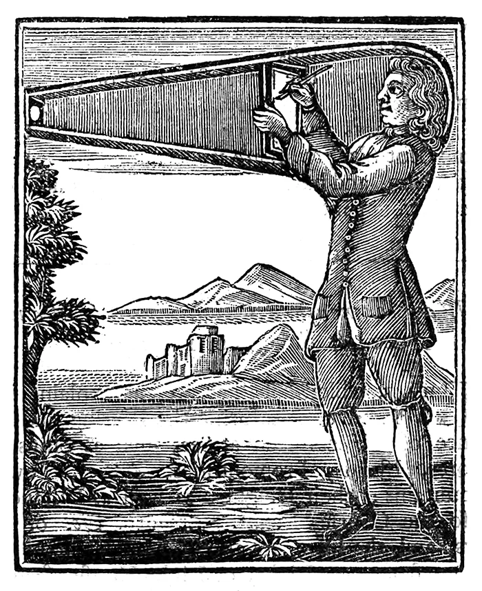 Sir Robert Hooke suggests a “wearable” camera obscura he calls a “Picture Box” (1694).