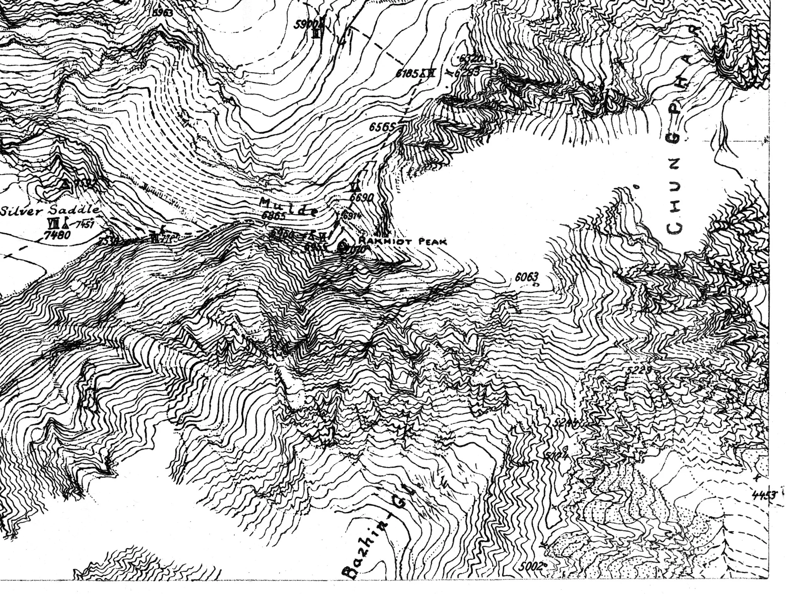 Publishing a highly detailed map and comprehensive account in English announced a triumph for German cartography, and served as a victory lap for von Orel’s ‘obsolete’ terrestrial stereoautograph. In the same journal, Finsterwalder shared a rare glimpse of a different map in progress. In 1934, he joined the ill-fated German Expedition that failed to surmount the extremely treacherous Nanga Parbat peak, in which nine German scientists and six Sherpas were killed. His ambition was to make the largest stereoautographic map ever attempted of mountainous terrain, personally photographing over 1,000 square miles of the Western Himalayan territory. Alongside a tribute to his fallen colleagues, he shared a reproduction of a small section of the machine-drawn stereoautographic map, drawn by his protégé Hans Biersack.