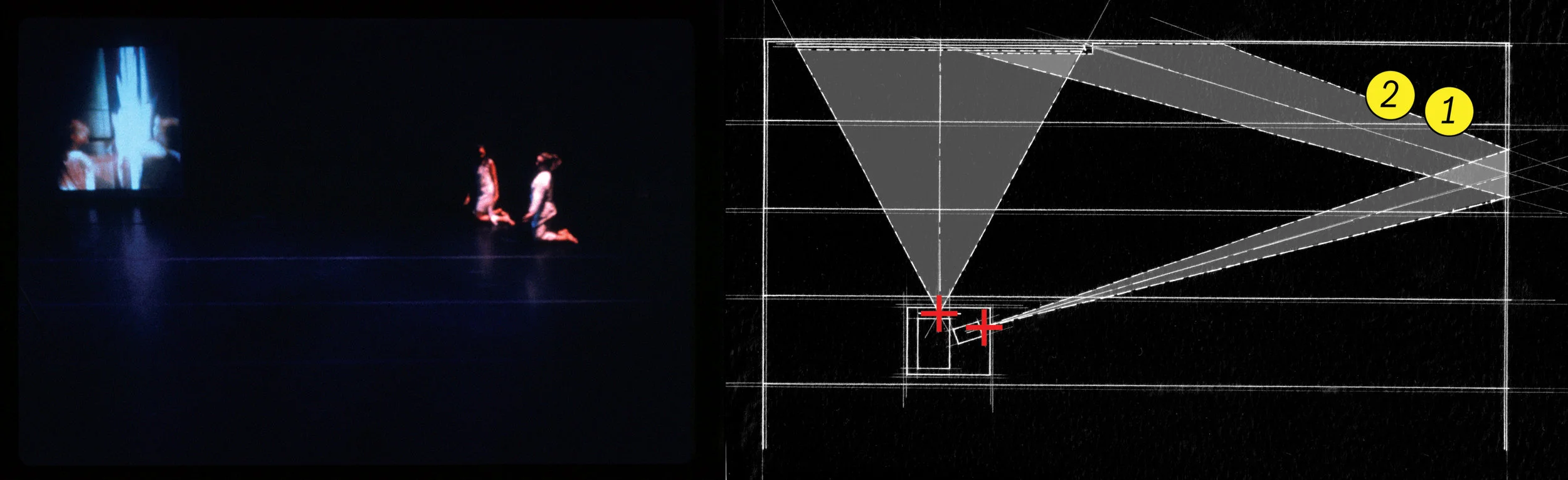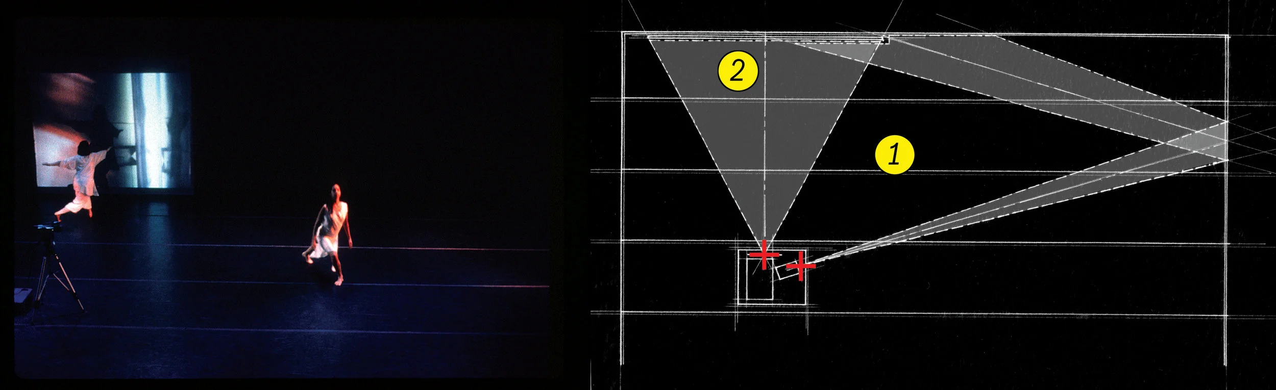 Two dancers, one camera, one projector, one screen, one mirror. Endless combinations.